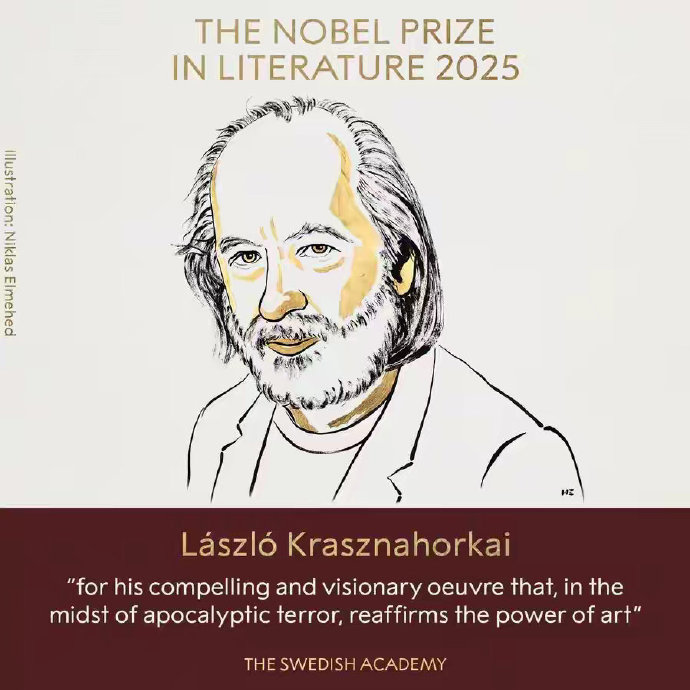 瑞典斯德哥尔摩当地时间2025年10月9日13:00(北京时间19:00)财米网,瑞典学院将2025年诺贝尔文学奖颁给了匈牙利作家拉斯洛·卡撒兹纳霍凯。