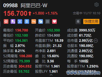 港股阿里巴巴短线拉升,现涨超1%富豪配资,此前一度跌超1%。